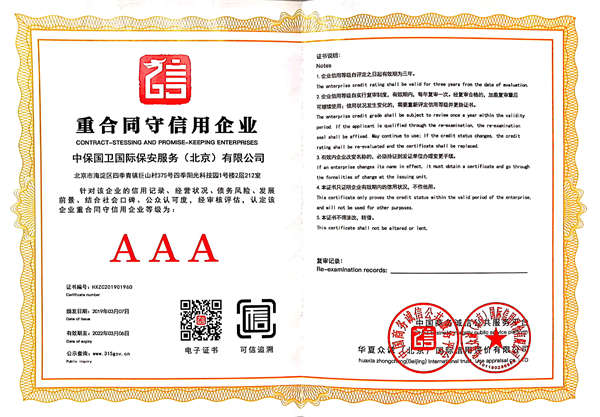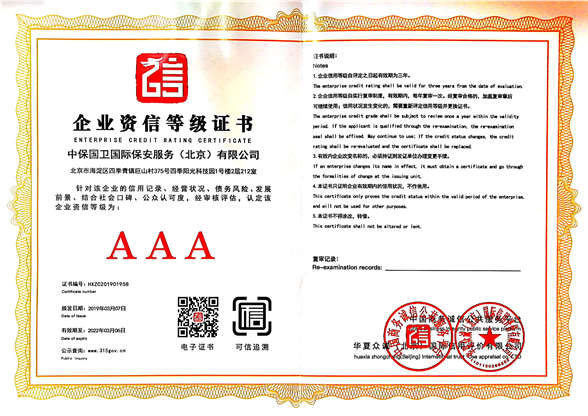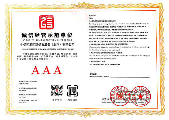 中保國衛(wèi)國際保安服務(北京)有限公司,屬中保國衛(wèi)集團旗下子公司。能全方位的為大型客戶提供優(yōu)質(zhì)的安保、押運服務,是集人防和技防于一體的新型正規(guī)化綜合安保押運服務企業(yè),提供人防、物防、技防、聯(lián)網(wǎng)報*、非武裝押運等安防相關的一站式服務。 公司在國內(nèi)多省設立有分公司及分支機構(gòu),著重提升安全押運、智能技術押運及安全技術防范相關的服務,業(yè)務范圍覆蓋全國一、二線城市、港澳地區(qū)以及海外地區(qū)。安保方面主要為政府機構(gòu)、金融機構(gòu)、企事業(yè)單位、醫(yī)療衛(wèi)生、高等院校、工業(yè)園區(qū)、大型商場、高檔住宅、智能商務樓、大型活動提供門衛(wèi)、守護、巡邏、押運(非武裝)、安全檢查、保安特勤、私人護衛(wèi)、消防中控、安全技術防范、遠洋護航等全方位服務,同時面向國際市場,為中資企業(yè)在“一帶一路”沿線國家投資提供境外安保服務。 >> 更多內(nèi)容 |